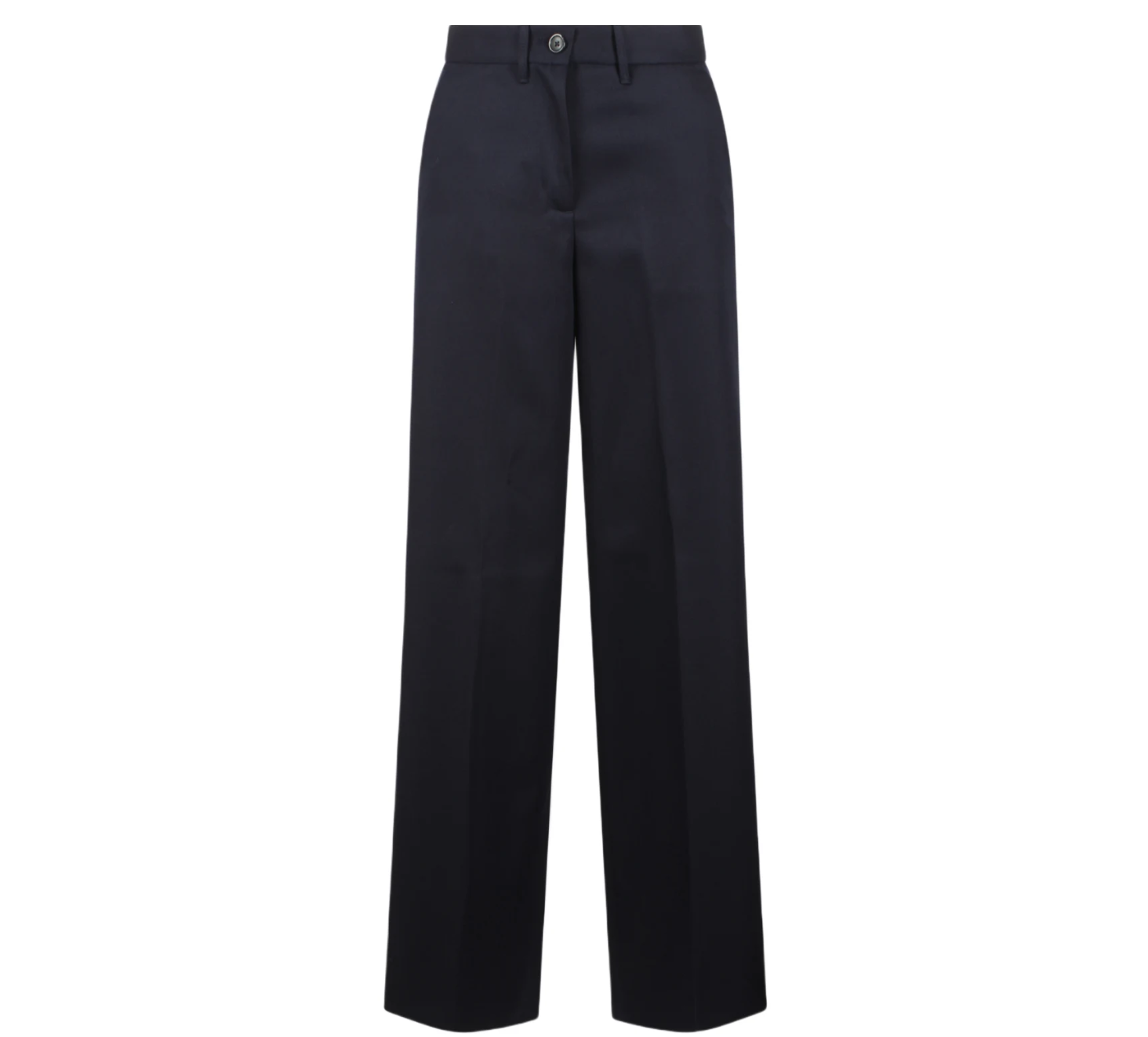 Donkerblauwe rechte pantalon van het Italiaanse merk Nine in the morning. De pantalon kan gecombineerd worden met de matchende blazer.