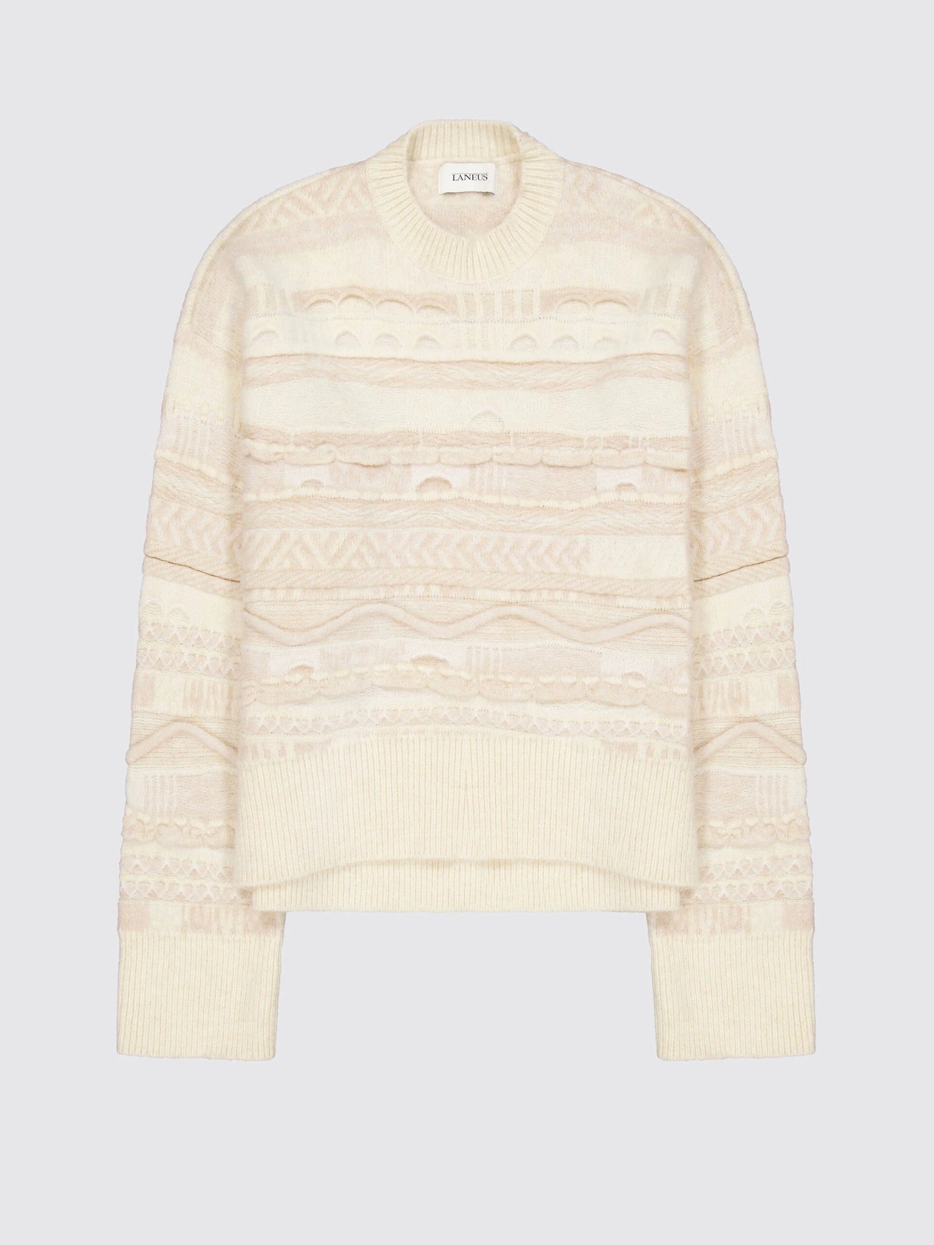 Gebreide oversized pullover in het off-white van het Italiaanse merk Laneus.