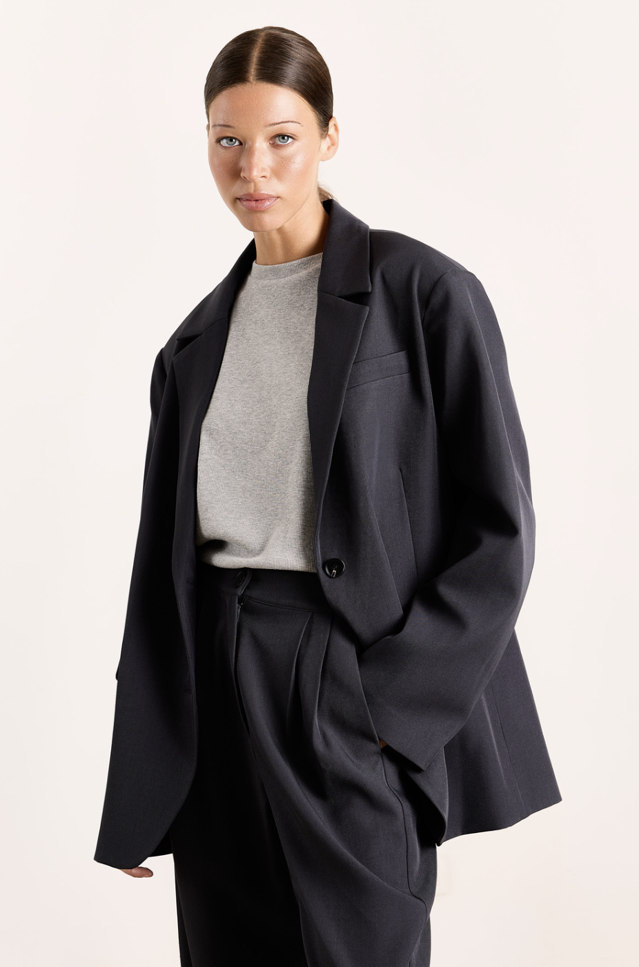 Oversized blazer in het grijs van het Belgische merk Studio Clique. De maten vallen ruim/oversized.