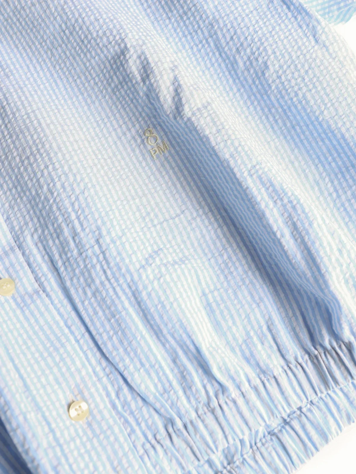 Lichtblauwe gestreepte blouse van het Italiaanse merk 8PM. De maten vallen ruim.